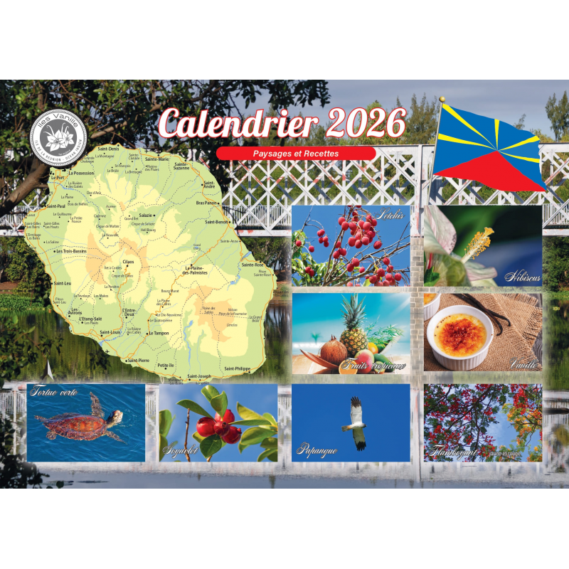 Ce beau calendrier édition 2026 saura ravir grâce à ses paysages enchanteurs et ses succulentes recettes réunionnaise.